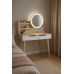 Функціональний туалетний стіл Jumi SCANDI з дзеркалом та LED підсвіткою підійде як для домашнього користування так і для салонів краси та кабінетів майстрів б'юті сфери. Туалетний столик виконаний з врахуванням стриманого мінімалізму Скандинавії та потреб сучасних жінок. Стільниця обладнана двома невеликими висувними шухлядами, на відкритій поверхні є дві полиці та велике дзеркало з яскравим підсвічуванням. Високий рівень якості матеріалів, зручності та функціональності столика вражає та захоплює!