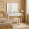 Вишуканість та міцність поєднуються в туалетному столику Vicco. Виготовлений зі стійкого ДСП, витонченої сталі та загартованого скла, цей столик є синонімом довговічності. Матеріали вибрані таким чином, щоб забезпечити стійкість до подряпин та легкість в очищенні, гарантуючи, що ваш туалетний столик залишатиметься в ідеальному стані роками. Чорна екошкіра на пуфі не тільки додає естетичної привабливості, але й відрізняється високою зносостійкістю та легкістю догляду, що робить цей столик ідеальним вибором для тих, хто цінує якість і стиль.