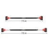 Довжину палиці можна регулювати від 110 до 138 сантиметрів. Однак рекомендована довжина становить максимум 130 сантиметрів. Довжину можна легко регулювати, повертаючи палицю. Швидкознімний запірний механізм запобігає ослабленню та повороту шини. Завдяки цьому можна швидко і легко відрегулювати довжину бруса до ширини дверей. Після кріплення брусок має вантажність до 150 кг, що робить його ідеальним для всіх членів сім'ї. Підтягувальна планка inSPORTline RK138 дозволяє зміцнити м’язи преса та спини в комфорті власного будинку!