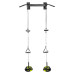 Шківи натягнуті сталевим тросом, який закінчується карабінами з кожного боку. З одного боку кабелю ви кріпите перехідник з дисками, а з іншого - ручку однією рукою. У комплект також входять гумові розширювачі, які можна прикріпити до двох вушок на конструкції. З ними ви чудово розширите свій репертуар тренувань вправами на розтяжку та зміцнення. Але очі на трапеції можна використовувати й по-іншому! Якщо у вас вдома є боксерська груша, ви можете легко повісити її та працювати над своїми ударами.
