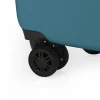 Валіза Gabol Paradise XP (S) Green (123322-004) оснащена чотирма здвоєними колесами з можливістю розвороту на 360°. Конструкція забезпечує рівномірний перерозподіл навантаження на кожне колесо, що сприяє плавному руху та маневреності валізи. Колеса виготовлені з термопластичного поліуретану (TPU). Цей матеріал має міцність порівнянну з пластиком, гнучкістю силікону, а також підвищену стійкість до перепадів температури та стирання. Завдяки цьому колеса мають тривалий термін експлуатації. Також відмінною особливістю коліс із TPU матеріалу є зниження шуму до мінімуму під час руху валізи нерівною поверхнею.