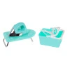 Набір пральна машина, прасувальна дошка та кошик для білизни - це пропозиція для всіх дітей, які люблять наслідувати своїх батьків під час щоденних домашніх справ. Пральна машина працює від батарейок АА - 3 х 1,5 В (не входять в комплект). Має звукові та світлові ефекти. Кнопки використовуються для встановлення програм прання, і, залежно від програми, ви можете почути різні звуки роботи пральної машини та засвітиться світлодіод на передній панелі пральної машини.