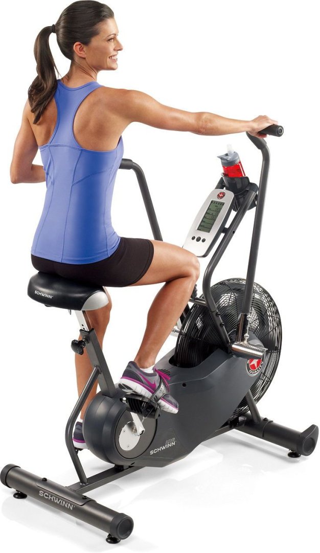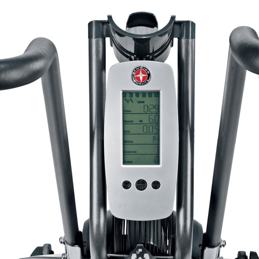 Schwinn Airdyne AD6 Air Bike - американського бренду Schwinn, який входить до складу корпорації Nautilus, яка є одним з лідерів фітнес-ринку в США. Цей продукт має запатентовану систему повітряного приводу з необмеженою кількістю опорів — чим інтенсивніше ви тренуєтеся, тим більший опір створює обладнання. Дозволяє одночасно тренувати верхню і нижню частини тіла або тільки верхню, при цьому не залучаючи до тренування ноги. Велосипед оснащений усіма необхідними аксесуарами, які зроблять тренування приємними та комфортними, включаючи РК-дисплей, який відстежує основні параметри тренування з можливістю перегляду статистики, корисної для відстеження прогресу та встановлення нових цілей тренувань, зручне регульоване сідло та транспортувальні колеса для зручності переміщення обладнання.