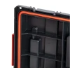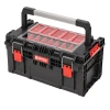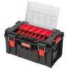 Ящик для інструментів Qbrick PRIME Toolbox 250 Expert - великий ящик для інструментів об'ємом 26 літрів. Водонепроникна та пилозахищена конструкція (IP66), поліамідні застібки з металевим стержнем та посилена конструкція гарантують захист розміщених усередині інструментів. Ящики PRIME завдяки додатковому ребру жорсткості витримують тиск до 120 кг, що дозволяє створювати зручні робочі платформи. Коробка на 250 штук оснащена 3 регульованими відділеннями та зручним лотком. Кришка EXPERT з органайзером оснащена 5 контейнерами та 7 регульованими відсіками, що дозволяє вільно розміщувати невеликі та довгі приладдя для майстерні. Зручність транспортування забезпечує широка ергономічна ручка із алюмінієвим профілем.
