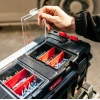 Невелика професійна модульна скринька з органайзерами для безпечного зберігання та транспортування інструментів.