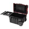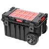 Великий ящик для інструментів на колесах для чудової мобільності модульних систем Qbrick. Два провідні колеса, закріплені на металевій осі, дозволяють безпечно транспортувати набори коробок та органайзерів. Телескопічна алюмінієва ручка, що виходить збоку, забезпечує зручний доступ всередину боксу, а також дозволяє зручно поводитися з боксом, з'єднаним з іншими елементами лінійки ONE, скріпленими з'єднувачами поліамідними. Простий механізм висувної рукоятки подвійного телескопа блокується при легкому ударі по ручці знизу. Вміст коробки оснащений зручним лотком і гнучким ущільненням, що захищає вміст коробки від потрапляння всередину пилу та води. Нова кришка EXPERT відкриває нові можливості для зберігання. Оснащений 8 відрами різних розмірів, він дозволяє зберігати як маленьке, так і довгасте приладдя для майстерень. Довга алюмінієва ручка забезпечує високу ергономіку транспортування.