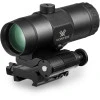 Vortex Optics розробили 3-х кратний магніфер Vortex VMX-3T з метою збільшення дальності огляду коліматорних прицілів. Кільця ущільнювачів і цільний корпус з авіаційного алюмінію надійно захищають від попадання всередину вологи і пилу. Кріпиться на зброю на планку Пікатінні, а зручне відкидне кріплення Flip Mount дозволяє одним натисканням кнопки та легким рухом руки швидко відвести магніфер убік для зміни мети – з дальньої на ближню.